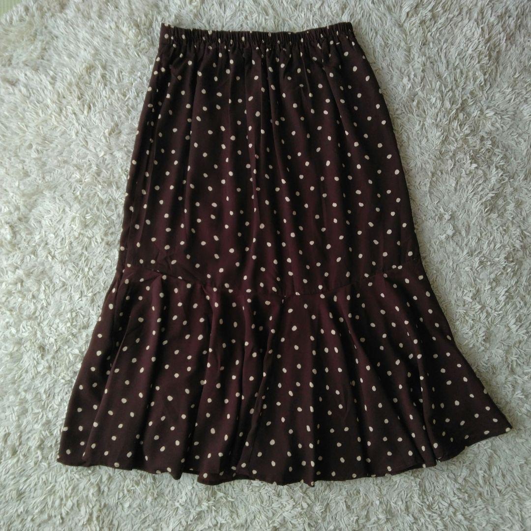 美品 エイチケーワークスロンドンブラウン ドット マーメイドスカートロングLL