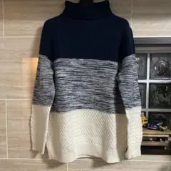 グレー リブ編み タートルネックセーター