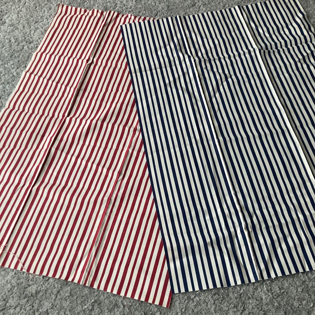 ストライプ柄綿生地 赤白・紺白 2枚セット