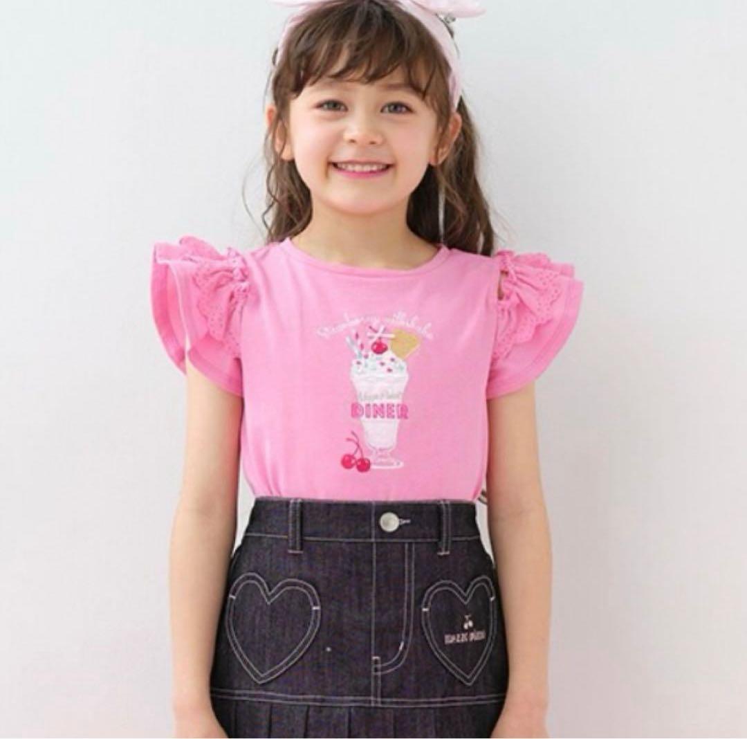 メゾピアノ ダイナーメニュー肩開き2wayTシャツ140