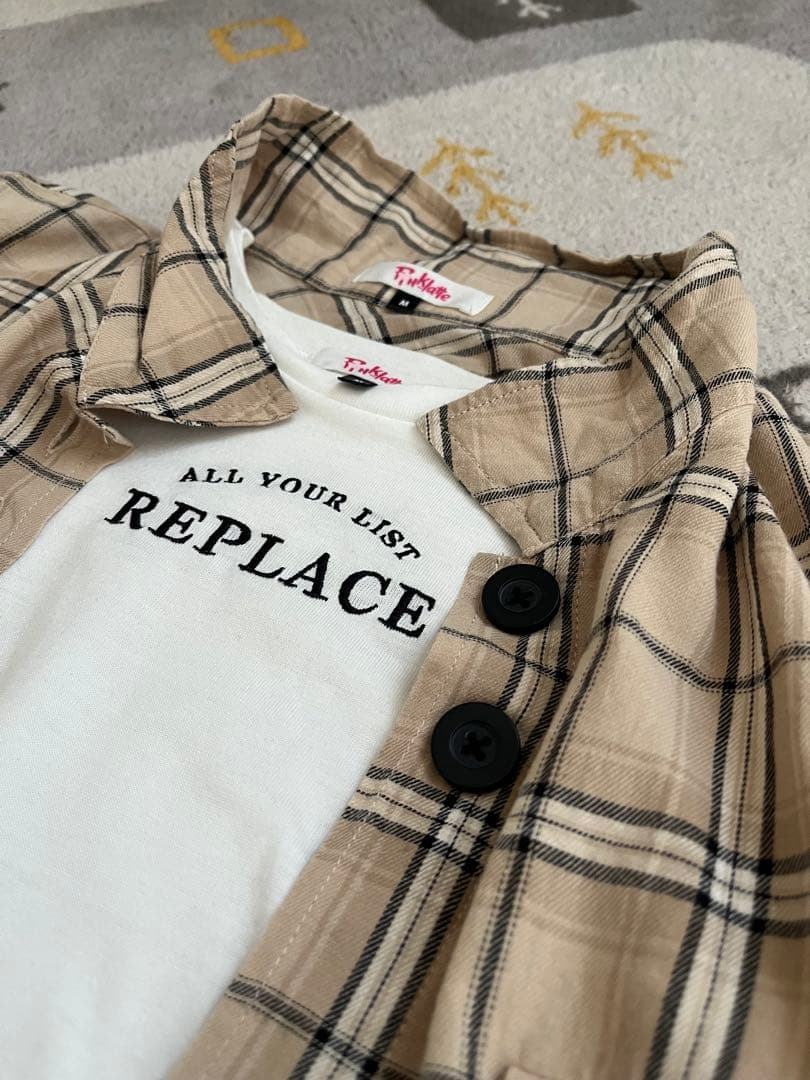 PINK-latteピンクラテ チェック ショート丈 シャツ Mサイズ ガールズ