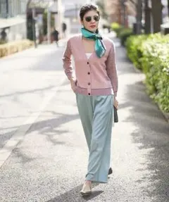 ショコラフィネローブ 接触冷感 綿麻混イージーワイドパンツ ライトベージュ