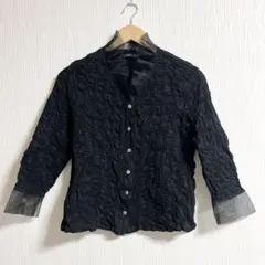 クラフトヒロ 5分袖カットソー 袖レース Uネック 裾レース スリット 黒 F