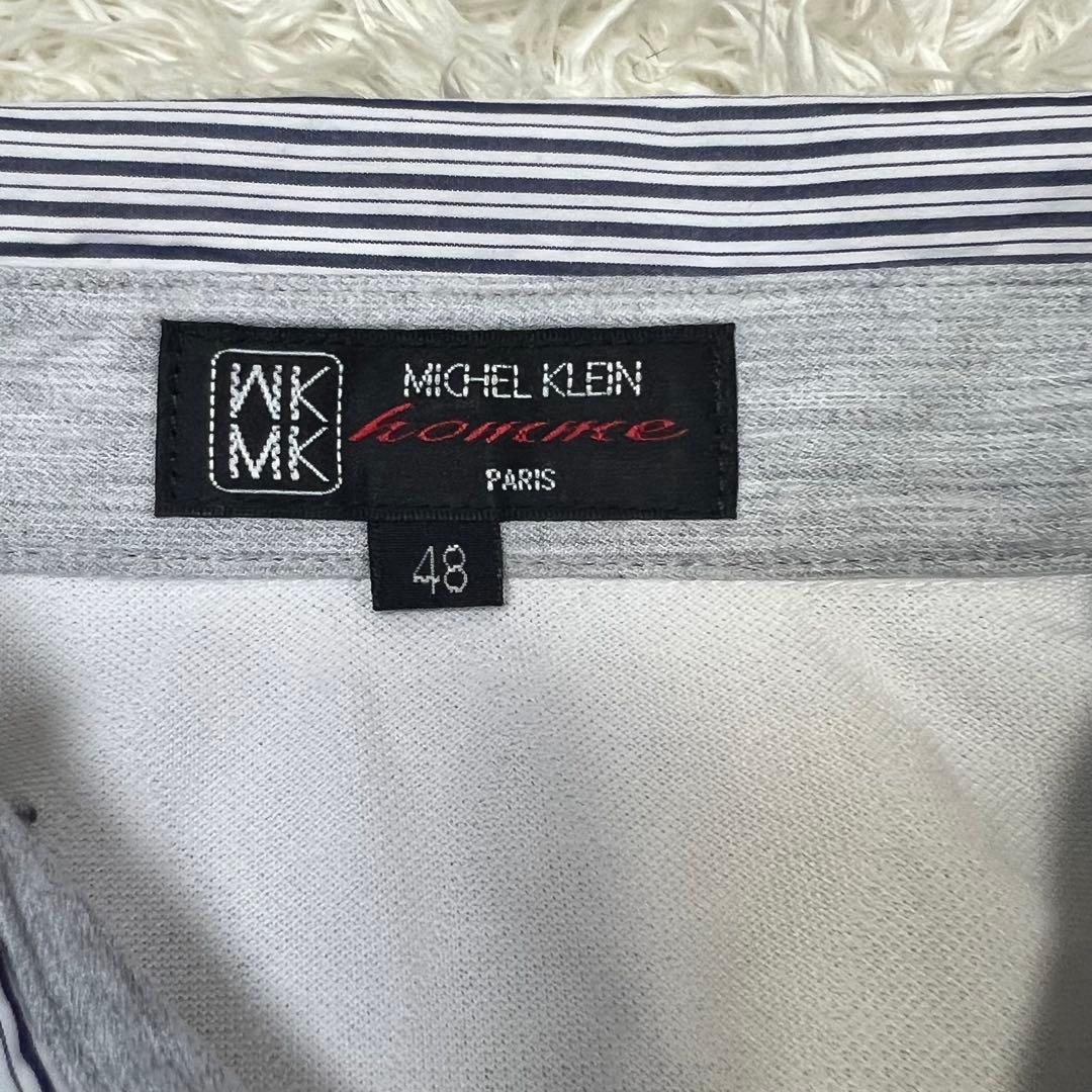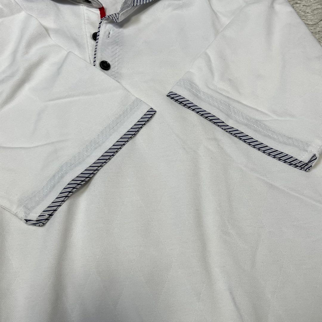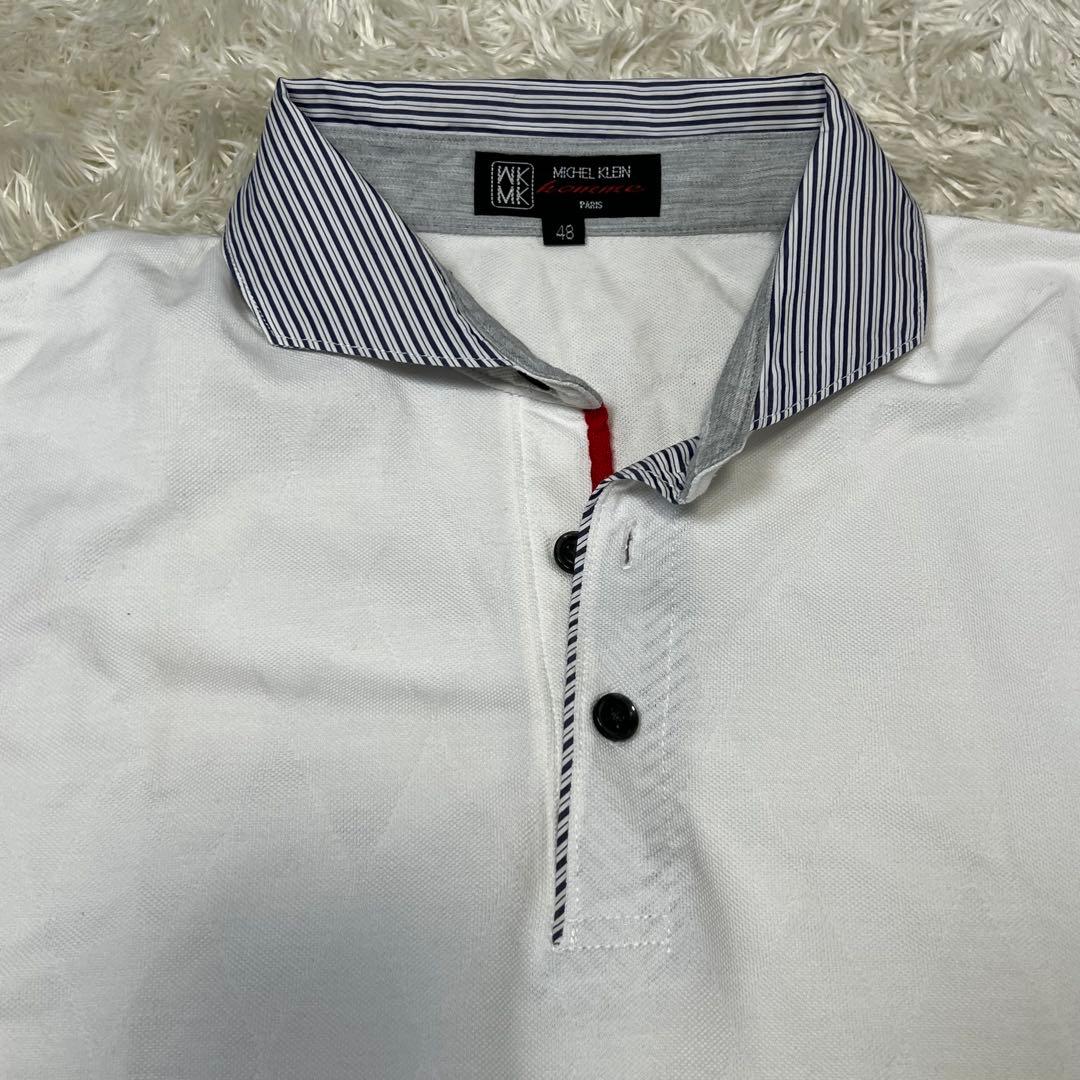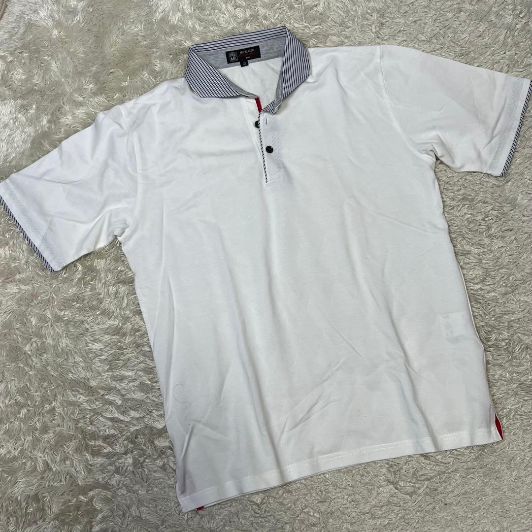ミッシェルクラン ボタンダウン 半袖 ポロシャツ ホワイト ストライプ メンズ