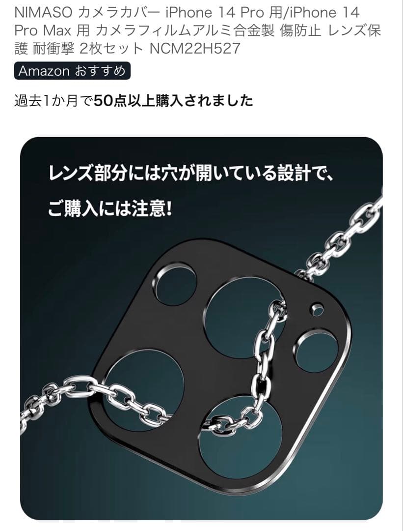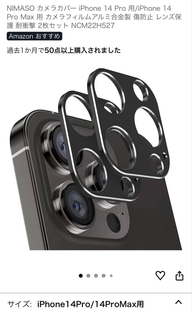 NIMASO カメラカバー iPhone14Pro、Max用 1枚!