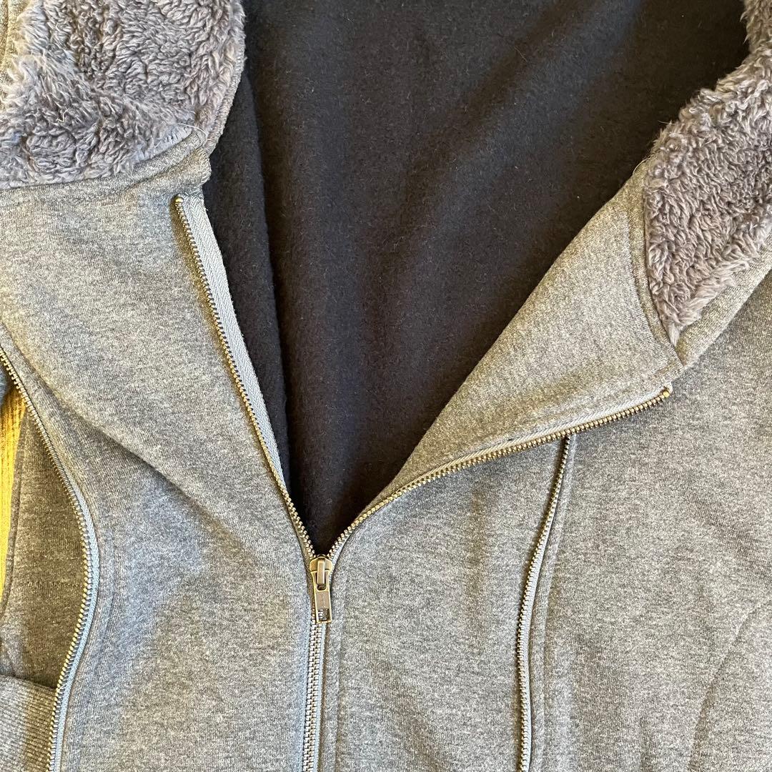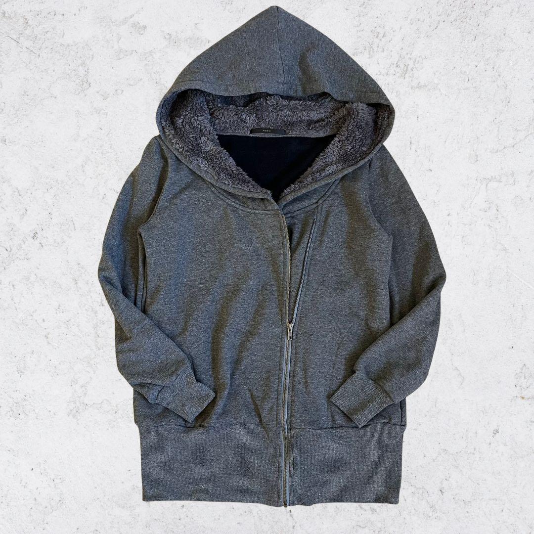 YEVS もこもこ 裏ボア フルジップパーカー グレー カジュアル ロング丈