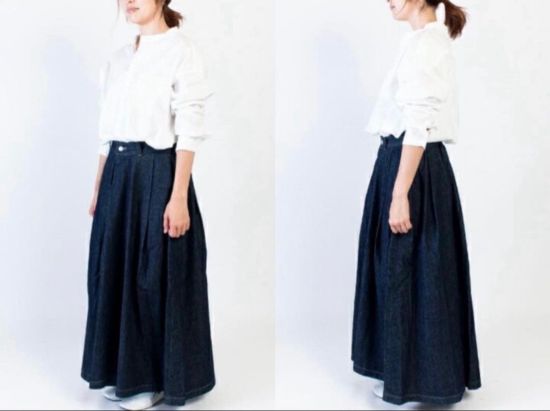 ハーベスティ デニムカルメンキュロットスカートパンツ日本製