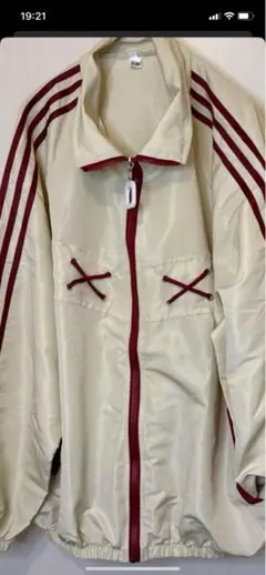 ラインが特徴的なナイロンジャンバー、ベージュ、えんじのLINE