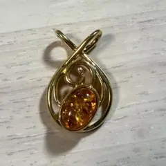 琥珀 ゴールド アンバー ペンダント 925シルバー