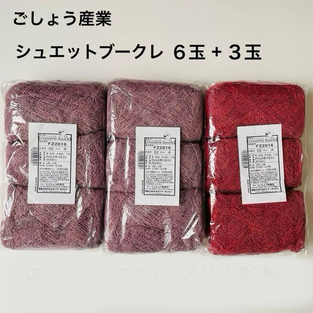 ごしょう産業 シュエットブークレ 2色 計9玉 ピンク・赤系 毛糸