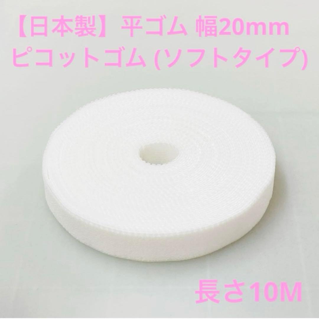 【日本製】平ゴム ピコットゴム(ソフトタイプ) ホワイト 幅20mm 長さ10M