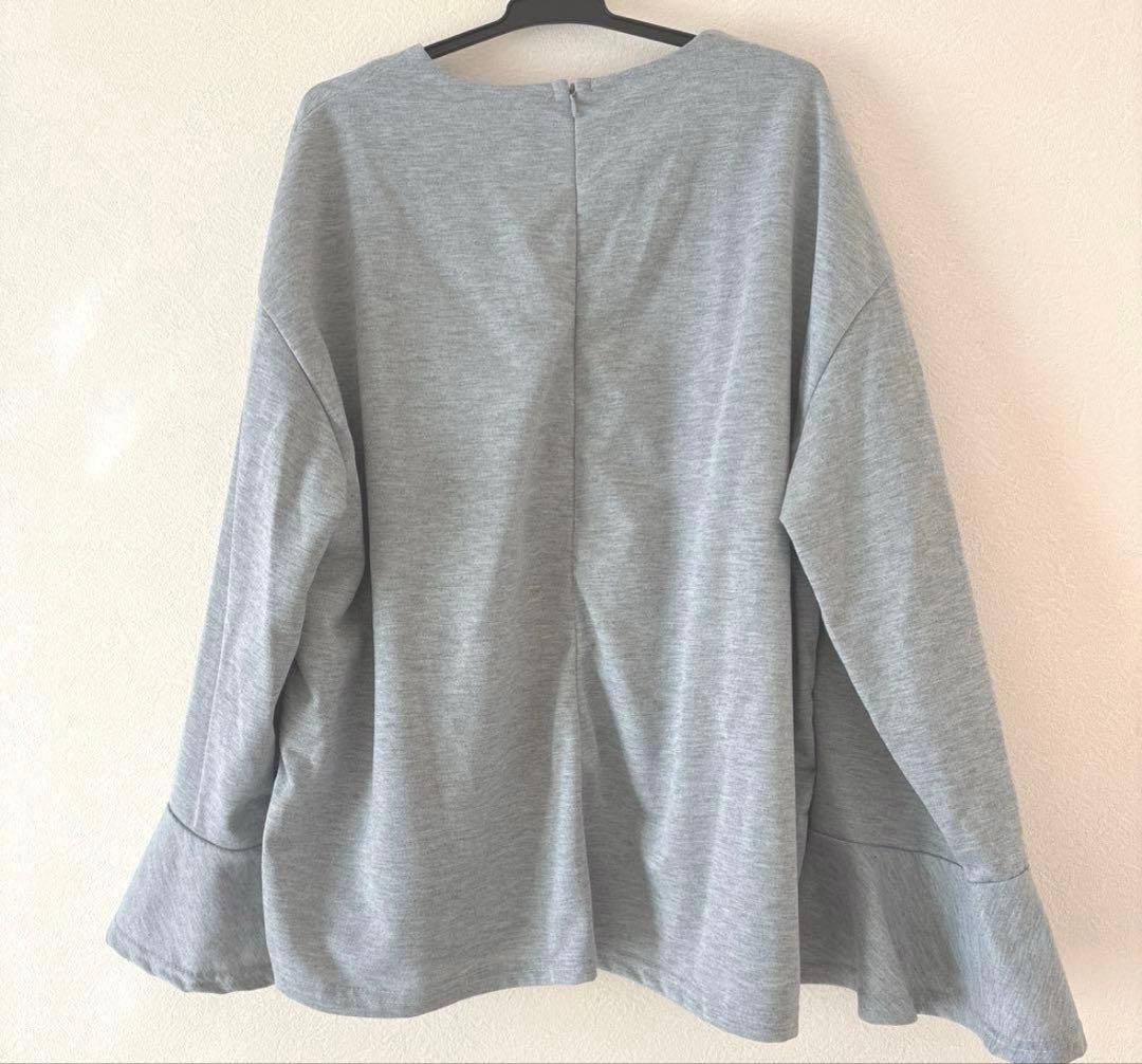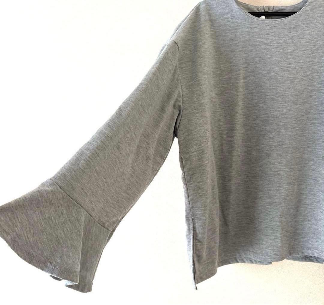 長そでトップス M カットソー トレーナー素材 グレー フレア袖