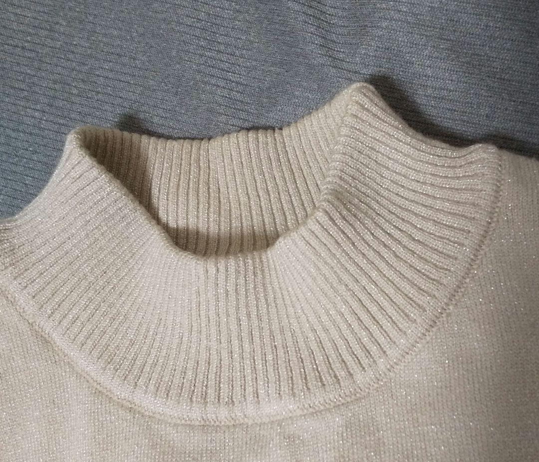 光沢感のあるベージュのニットハイネックセーター LL(Lに近い)