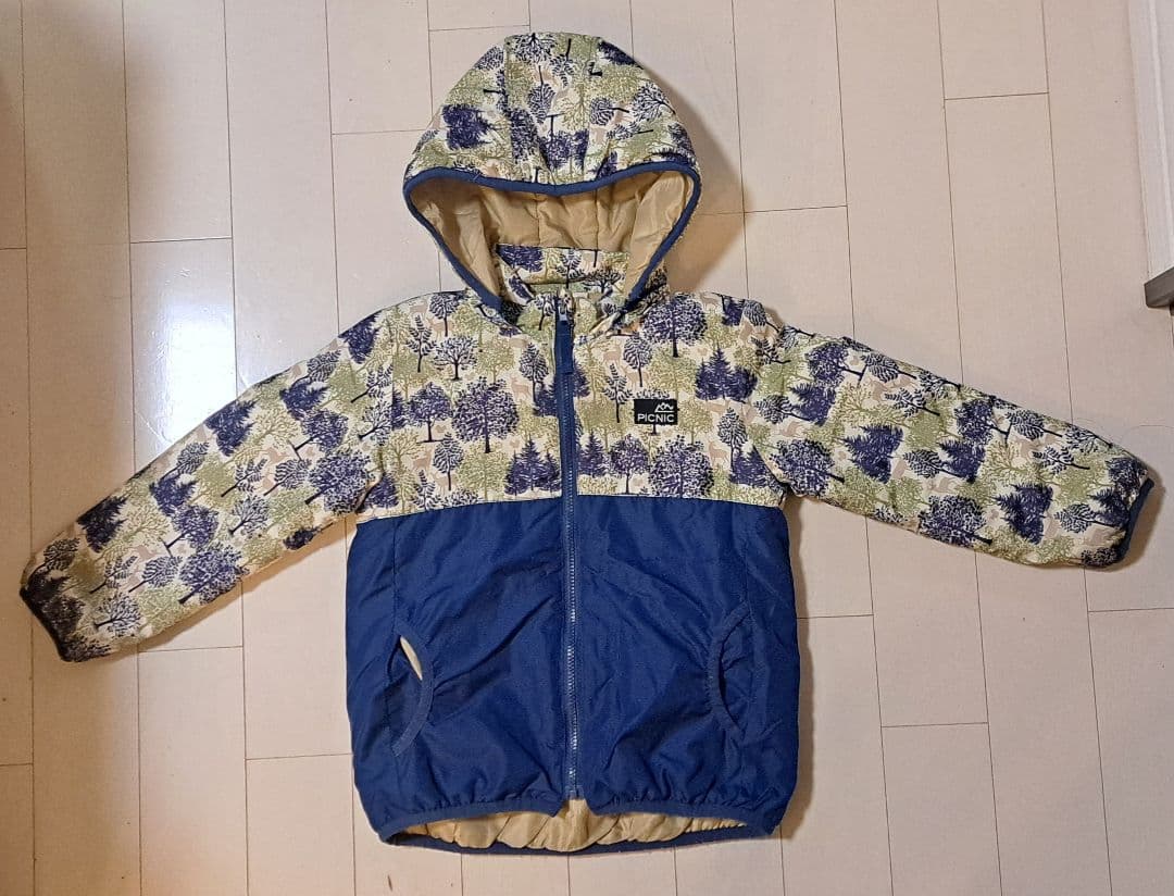 男児用 PICNIC 中綿入りジャケット 着脱可能なフード付き 130cm