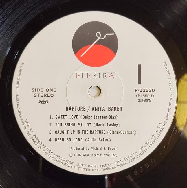 Anita Baker(アニタ・ベイカー)「Rapture」LP 1986年