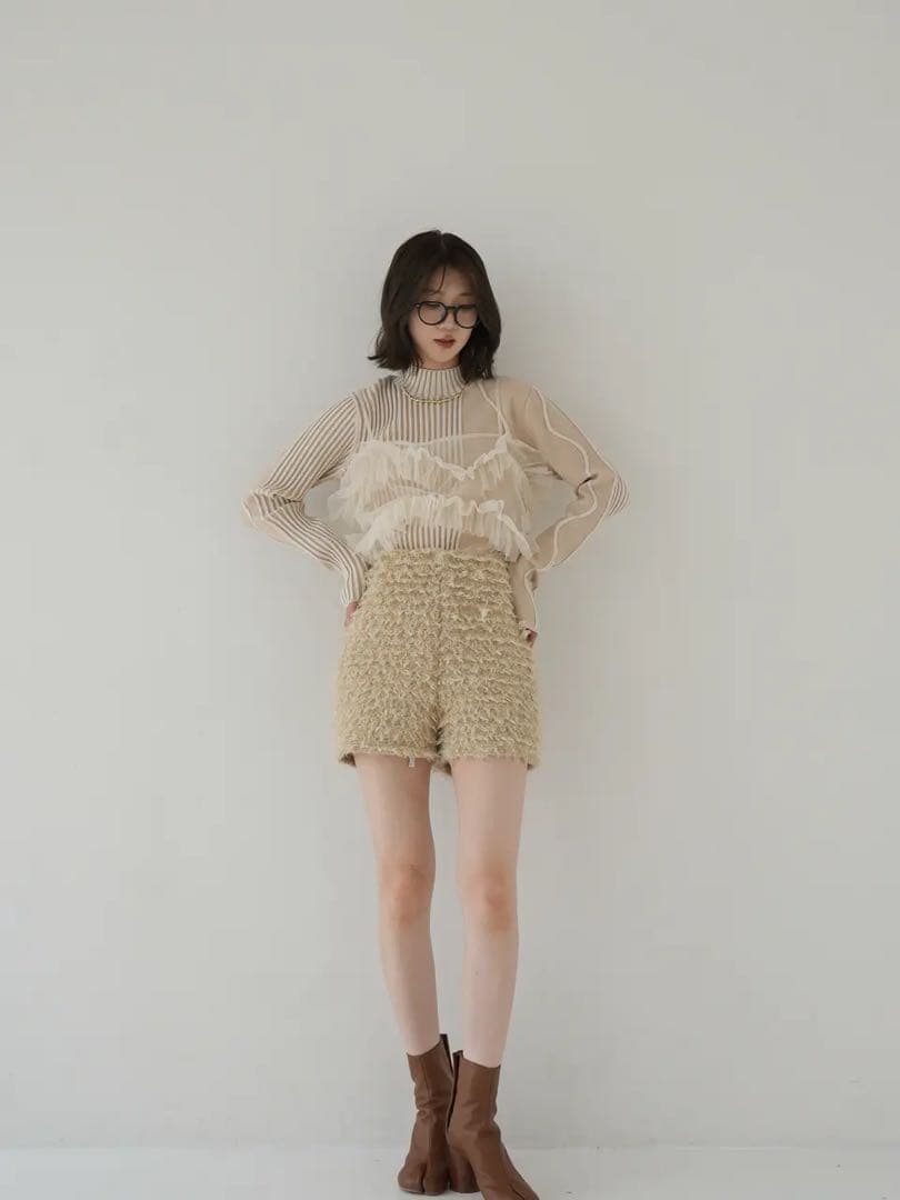 【Eaphi】WAVE ASYMMETRY RIB KNIT ivory