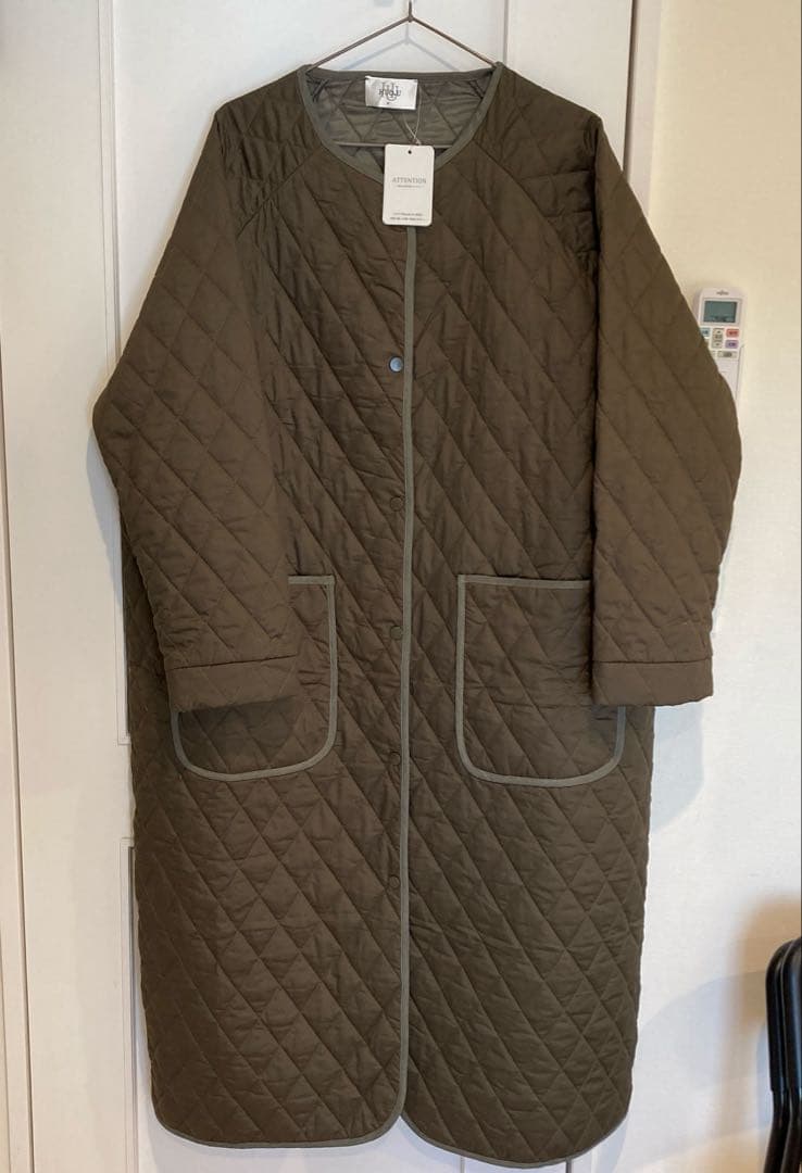 未使用タグ付きHUG.Uハグユーキルティングジャケットロングコートオリーブカーキ