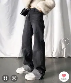 BONLECILL カラーステッチ ロールアップハイウエスト デニムパンツ M