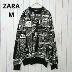 ザラ 総柄 ニット セーター M モノクロ グラフィック モード系