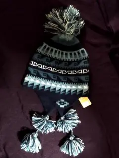 チャイハネ/ ネイビー ポンポン付きニット帽/ペルー製