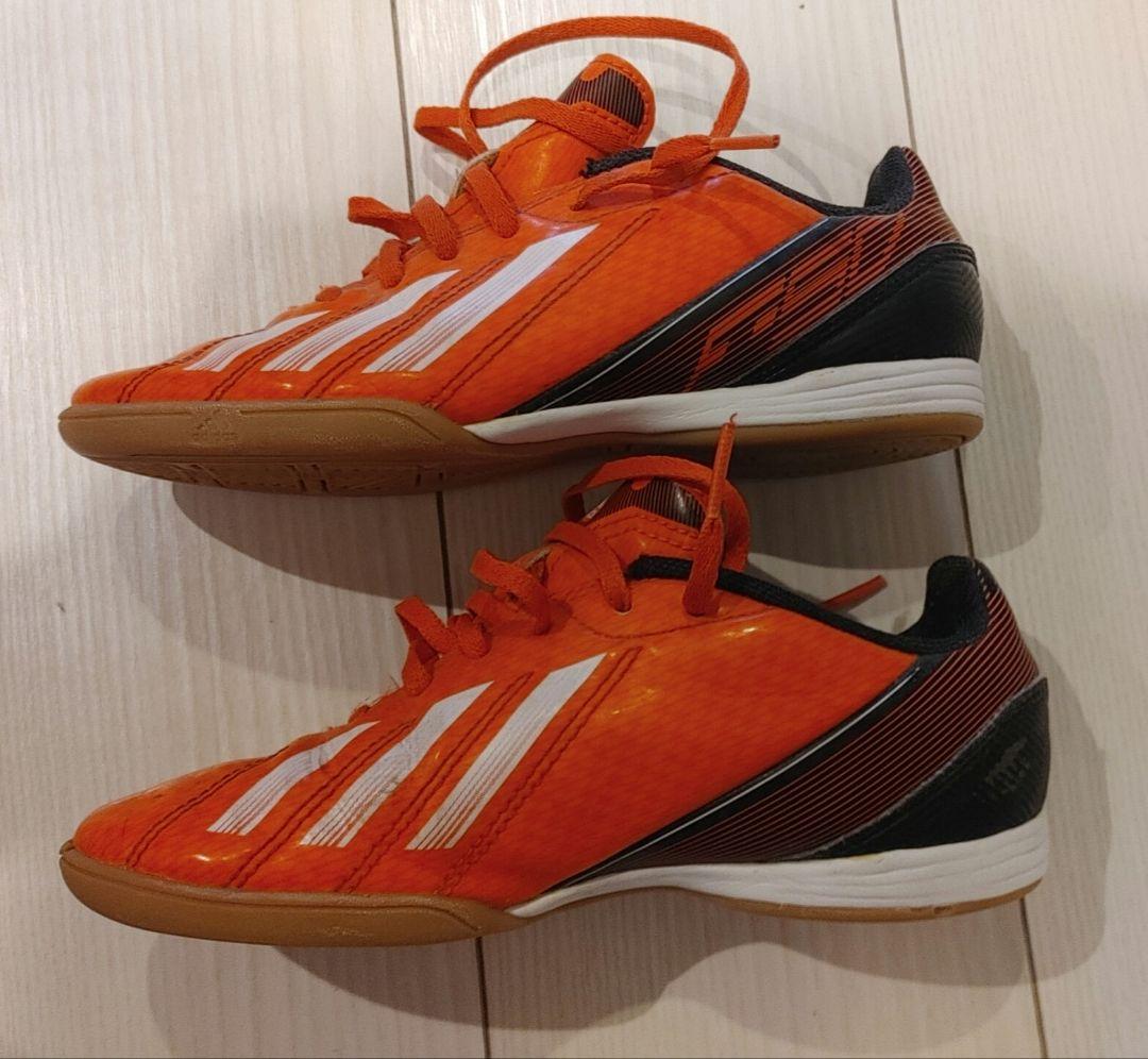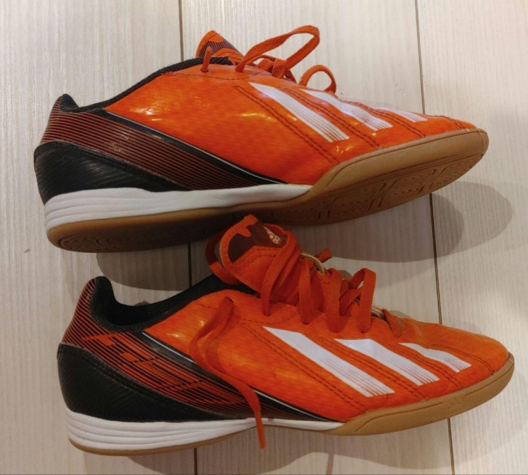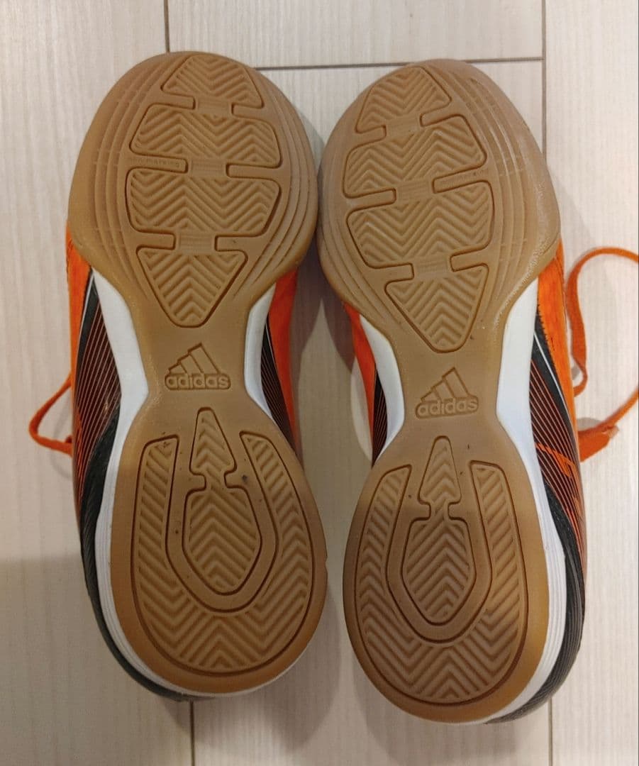 adidas オレンジ サッカーシューズ ストライプデザイン