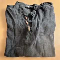 麻の長袖・ダークグリーン・プルオーバー 木製ボタン付き・サイズL