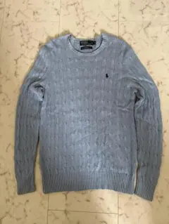 【希少】90s シルク100% ラルフローレン ケーブルニット ライトブルー