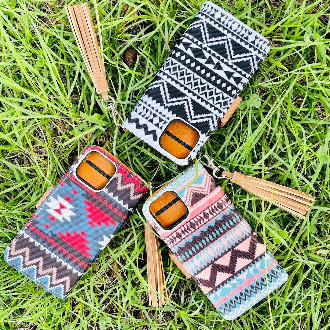 iPhone13 ケース カリフォルニア西海岸 ネイティブ柄 コンチョ 手帳型