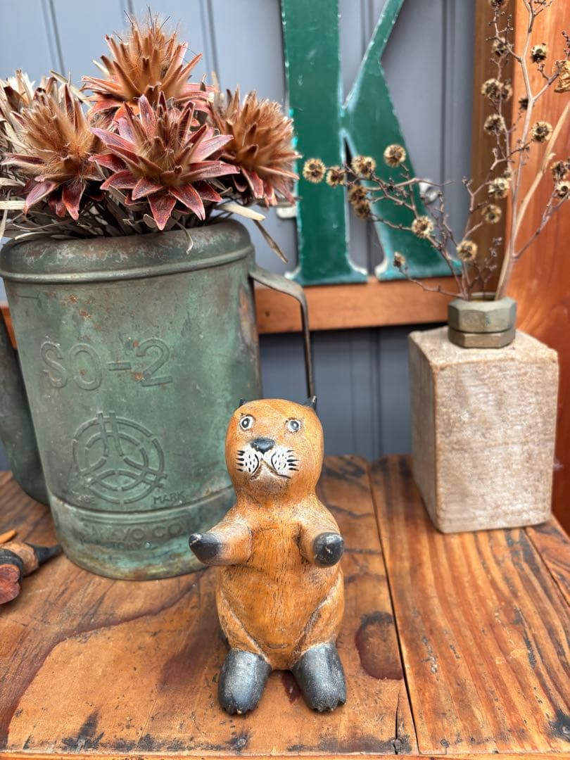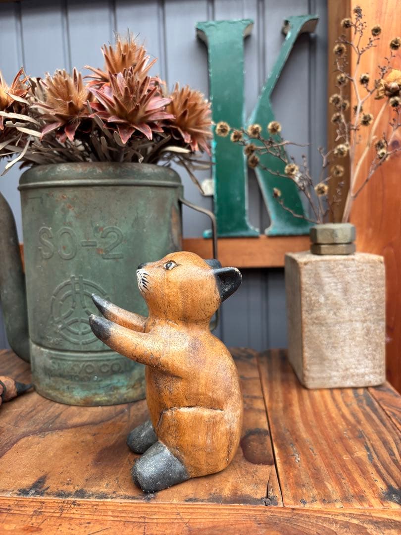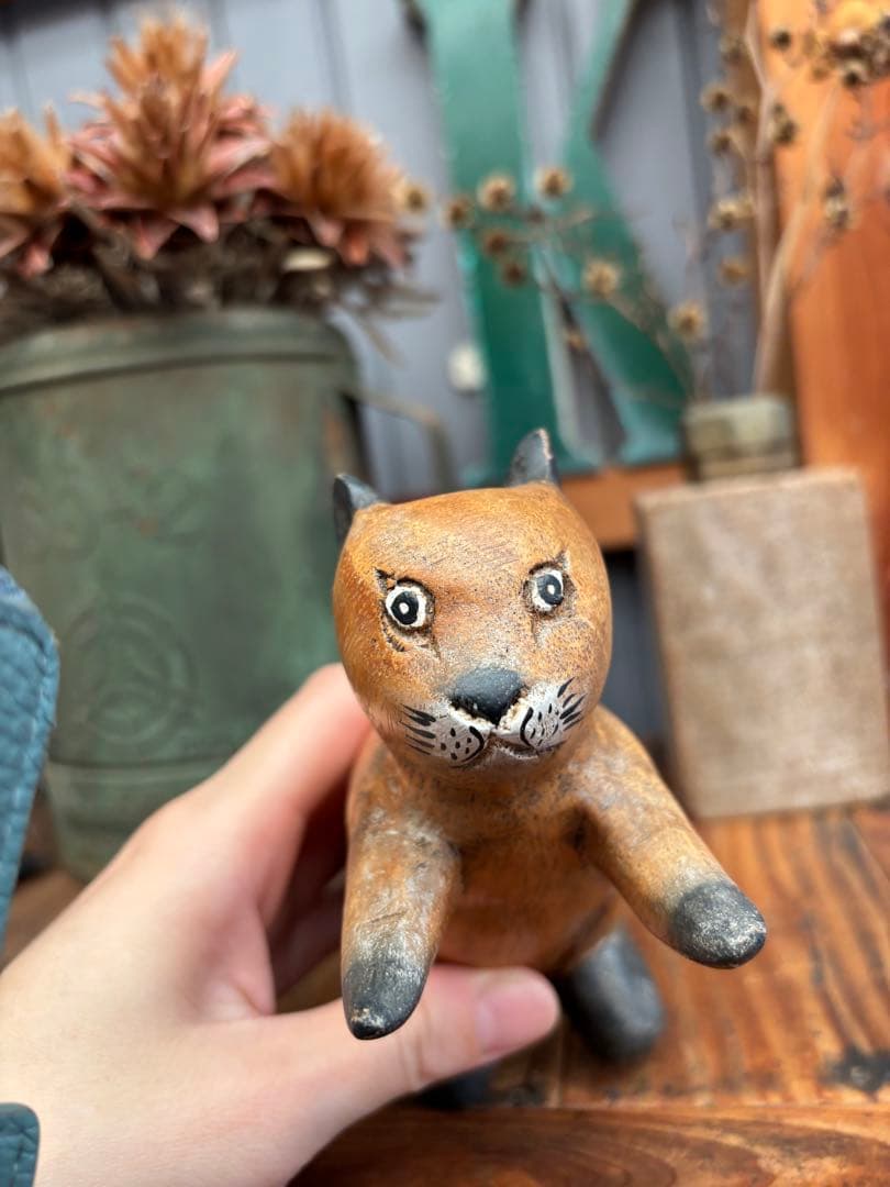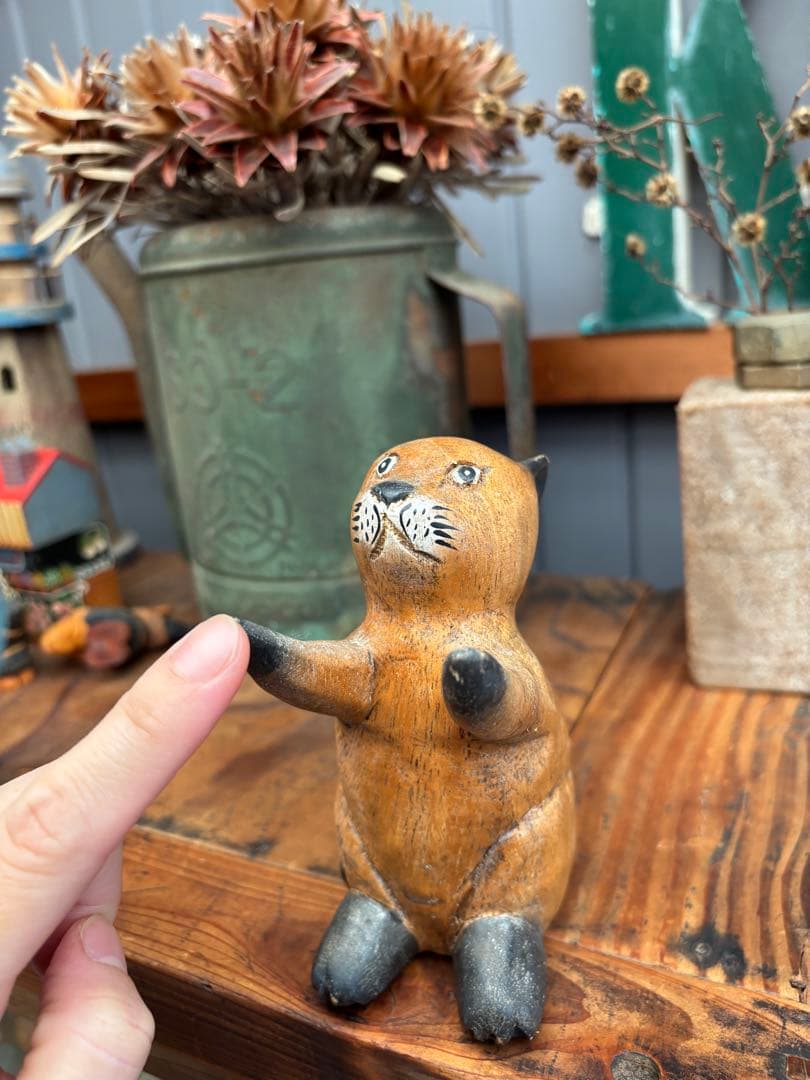 木製 猫 ネコ 置物 ヴィンテージ タッチポーズ インテリア バリ島