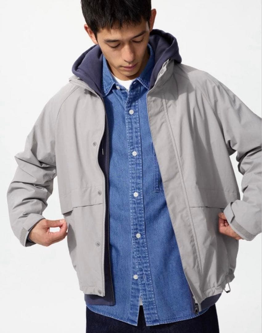 【即購入可】 UNIQLOウインドプルーフスタンドブルゾン GRAY M