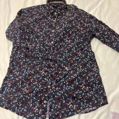 COMME CA MEN ネイビー花柄長袖シャツ S