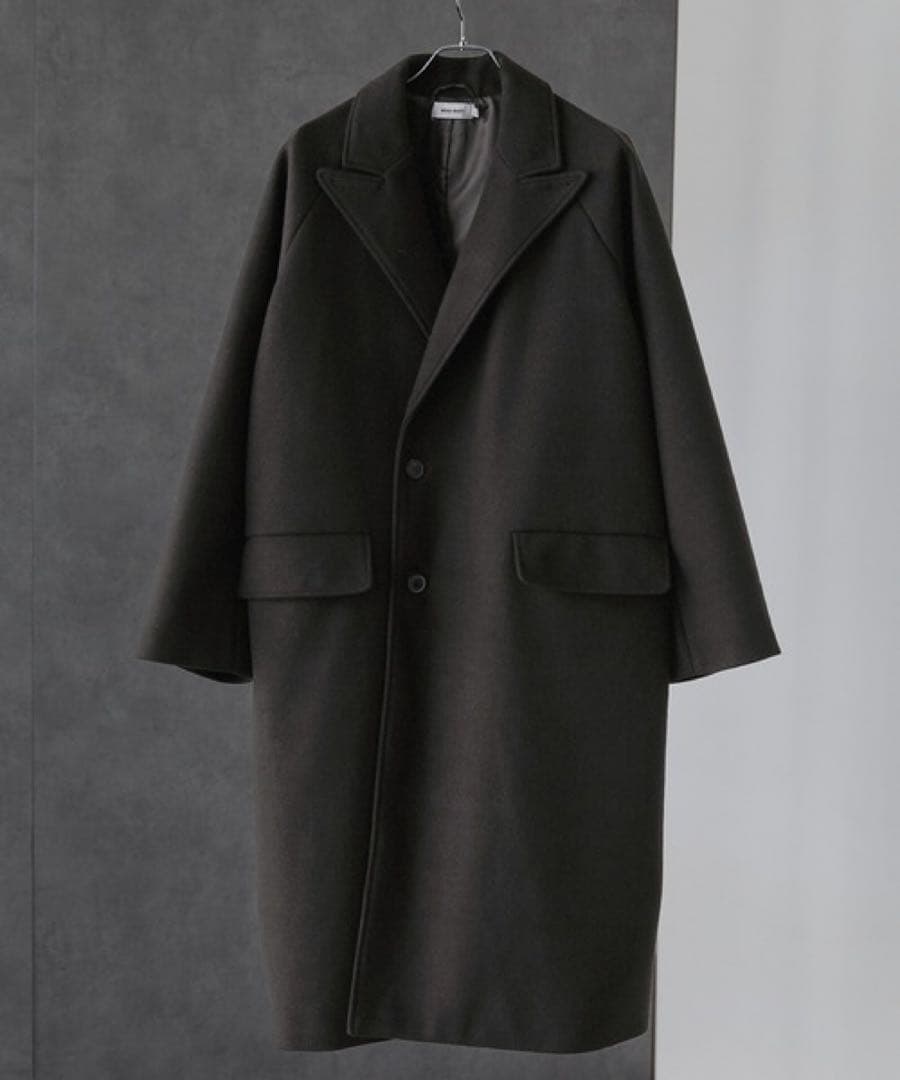 MONO-MARTによるメルトンラズランフリーチェスターコートで、ワイドなボディとモダンなカラーバリエーションで別注をかけた新作ロング丈が特徴です。
