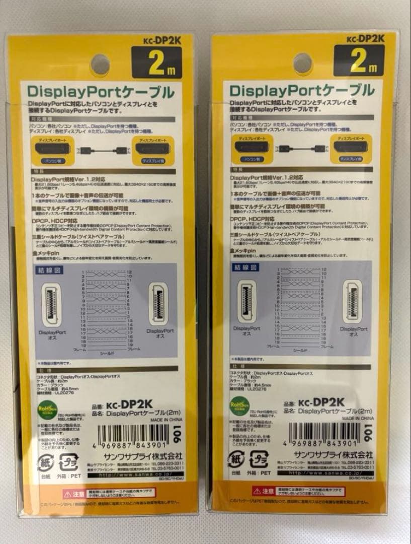 サンワサプライ DisplayPort 2m KC-DP2K 2本セット