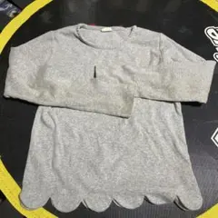 グレー 長袖カットソー スカラップ裾 赤いリボン