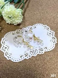クリスタルとドロップビーズ、フラワービーズのイヤーカフ 2way【CRY41】