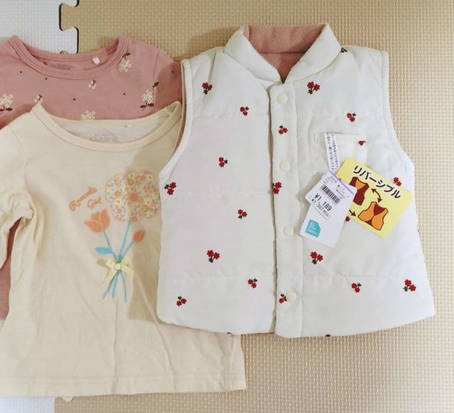 新品リバーシブルベスト 80 *長袖Tシャツ2枚(中古)つき