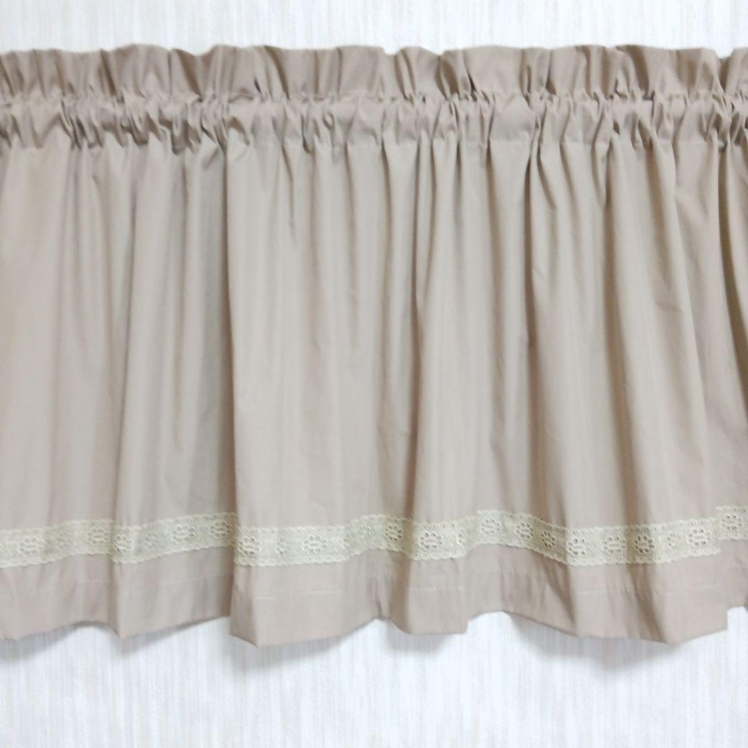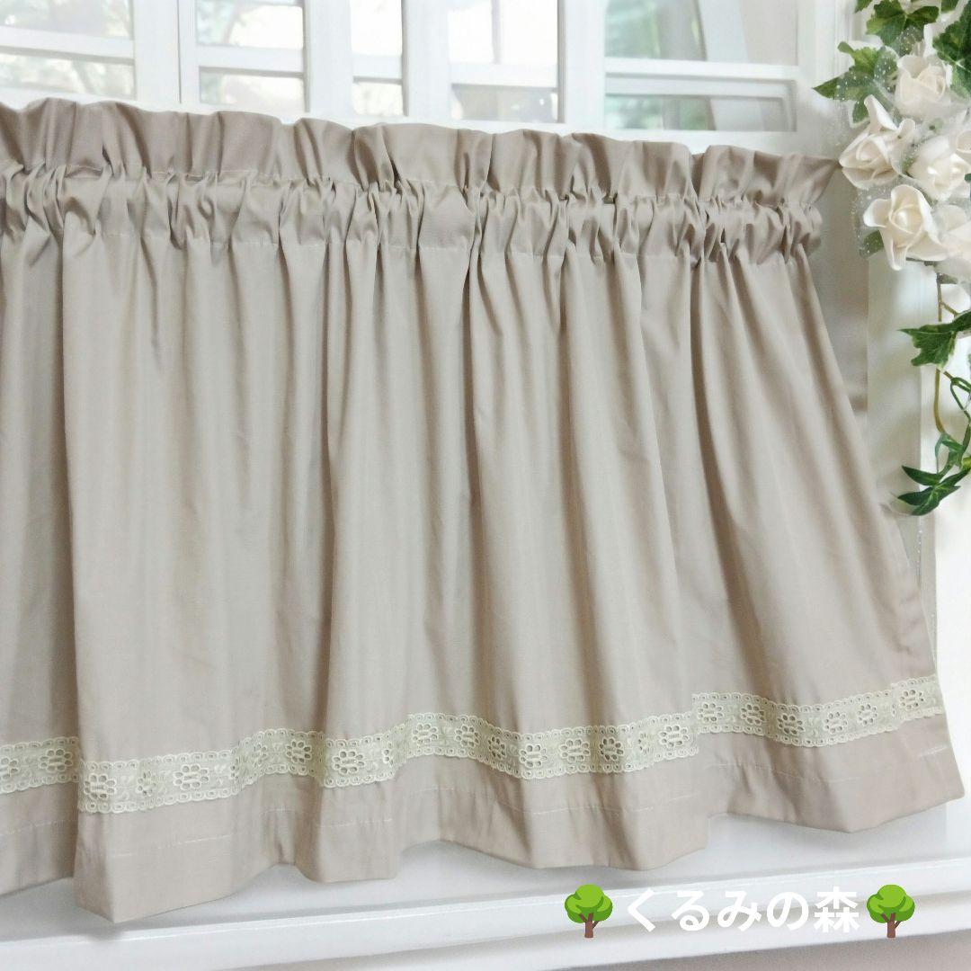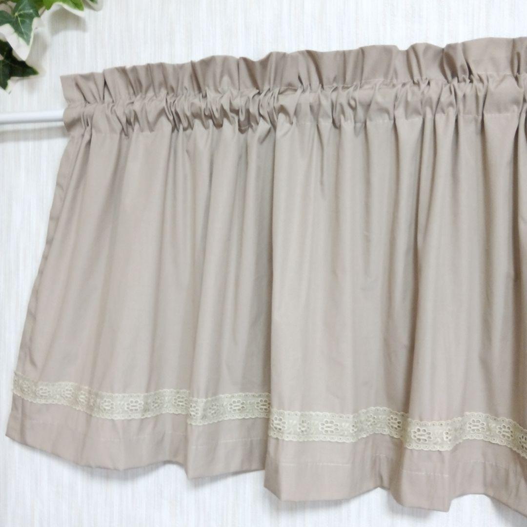 グレージュのカフェカーテン♥綿無地♥花柄レース♥目隠し♥オーダー可能♡