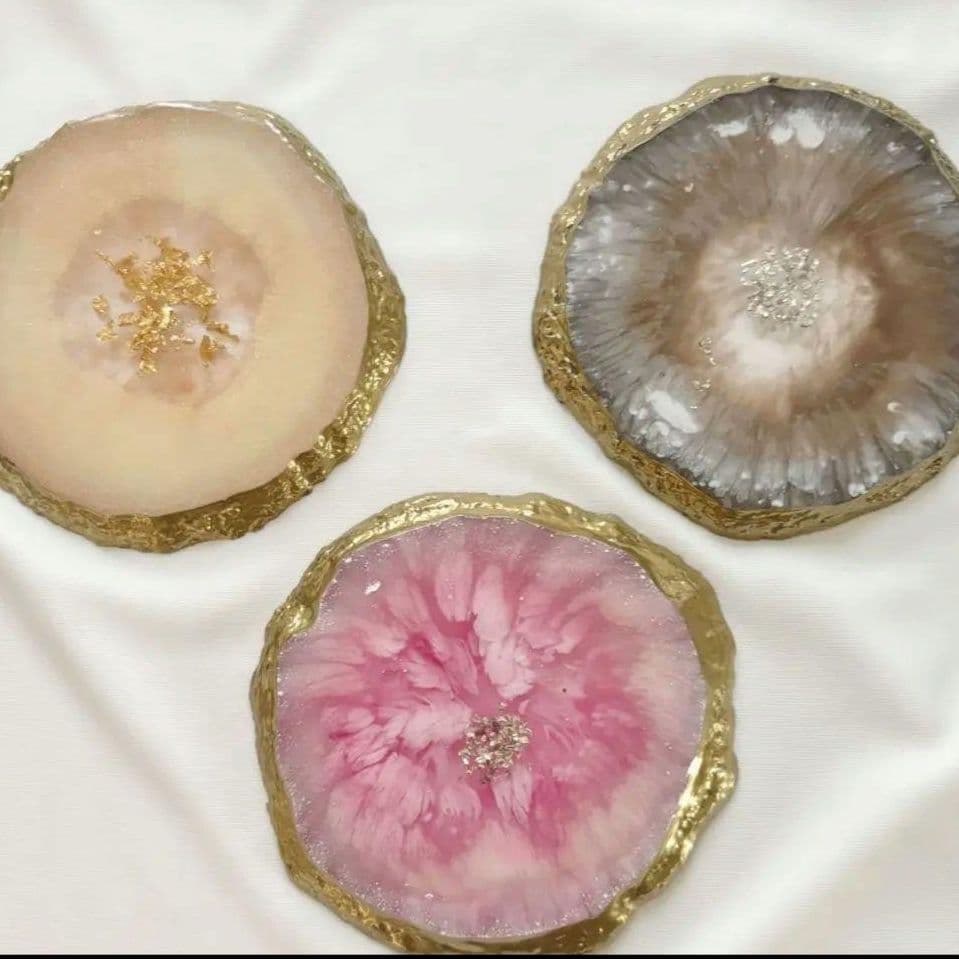 鉱石風 小物トレープレート インテリア置物 メノウスライスアゲートニュアンスカラ
