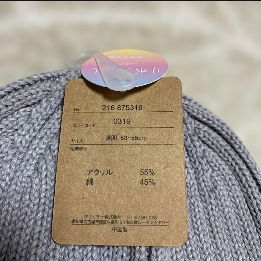 新品未使用 リボン付き グレー ニット帽 53-55cm