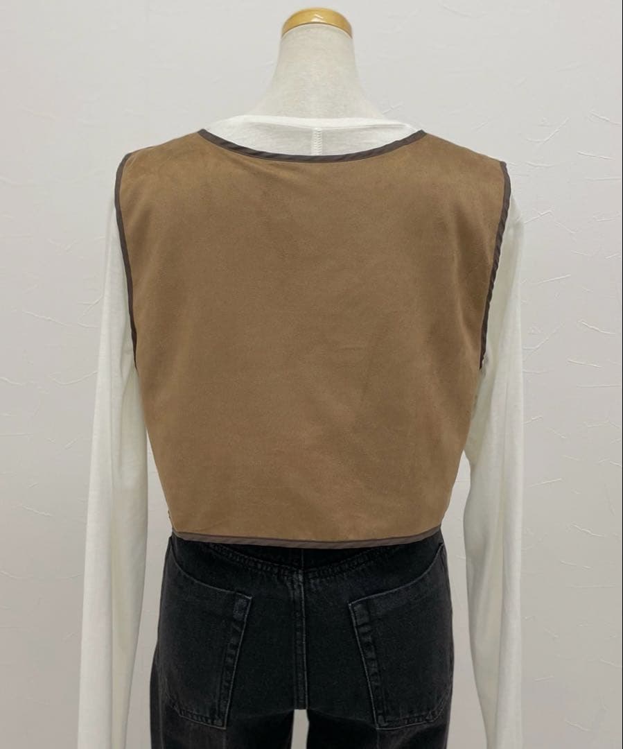 新品、未使用、タグ付き❗️しまむら ルナシオン パイピングスエードベスト Mサイズ