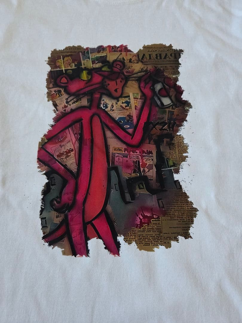 ス*ン様 ピンクパンサー グラフィックTシャツ ホワイト ヴィンテージ風 レトロ
