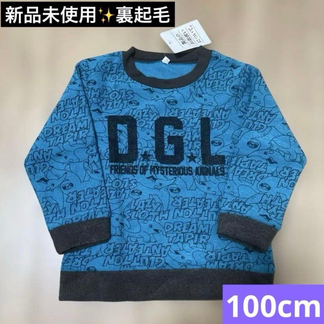【新品タグ付】キッズ トレーナー 裏起毛 100cm 青 動物柄