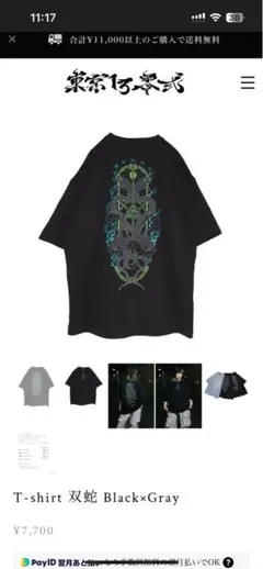 東京13零式 T-shirt 双蛇 Black×Gray QOOZA