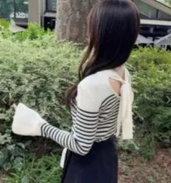 神戸レタス ペプラムニットフレアスリーブ ニット M