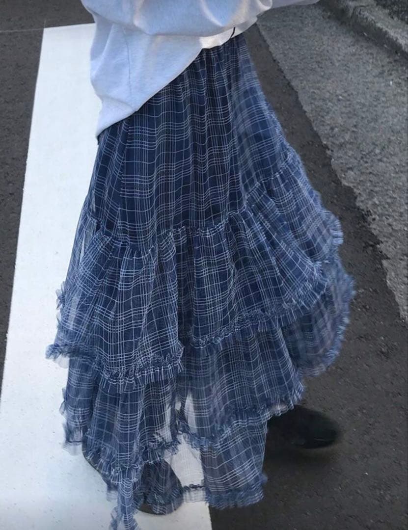 SHEIN ロングスカート チェック柄 ブルー