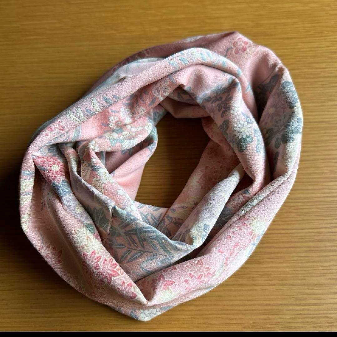 ★ 新品 未使用 シルク 四季の移ろい柄 桃色 スヌード a