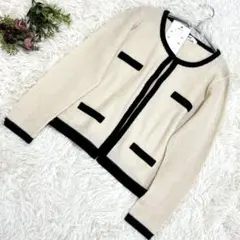 エフデ ホワイト ブラック ノーカラージャケット 秋冬 透け感 Mサイズ 着回し