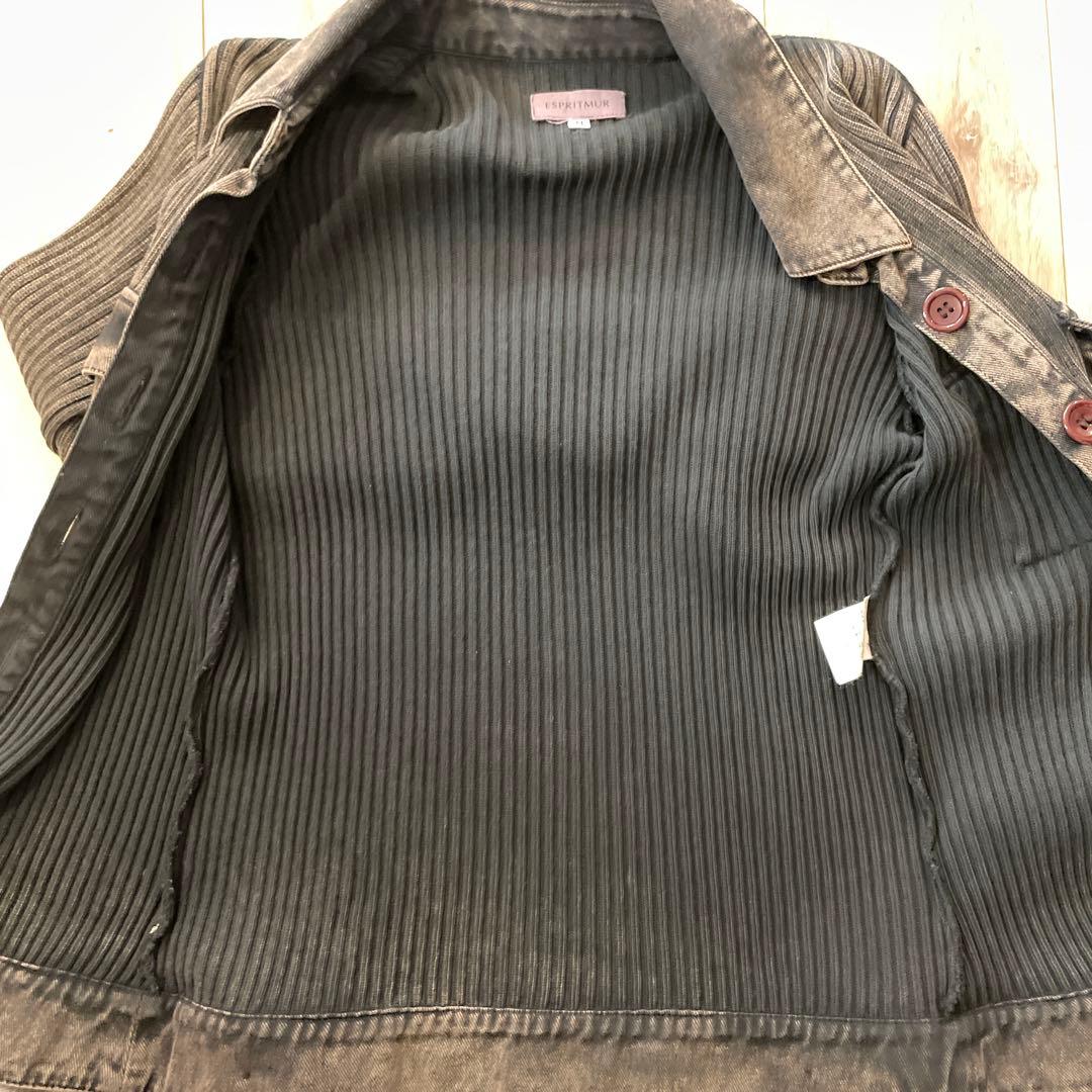 グレー リブ編み 襟付きジャケット トップス Mサイズ