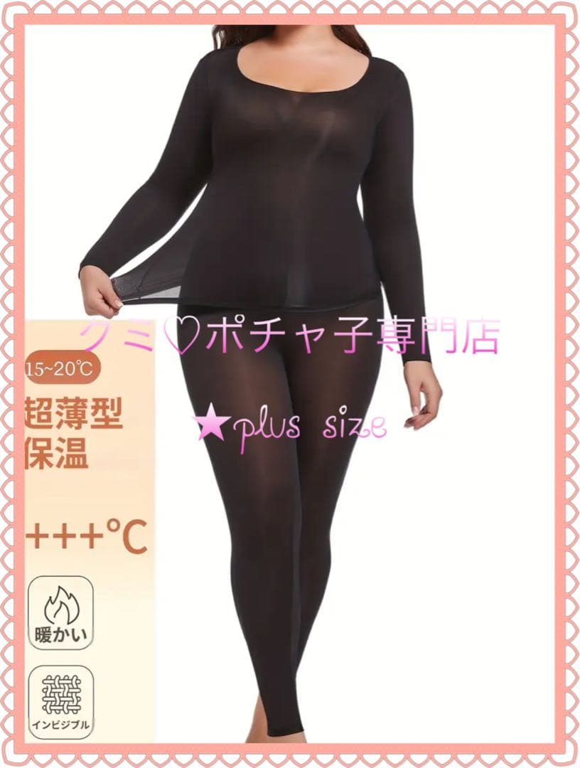 *大きいサイズ3L*ブラック 超薄型 保温 長袖 サーマルインナー 上下セット