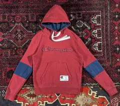 champion チャンピオン プルオーバー パーカー レッド×ネイビー S